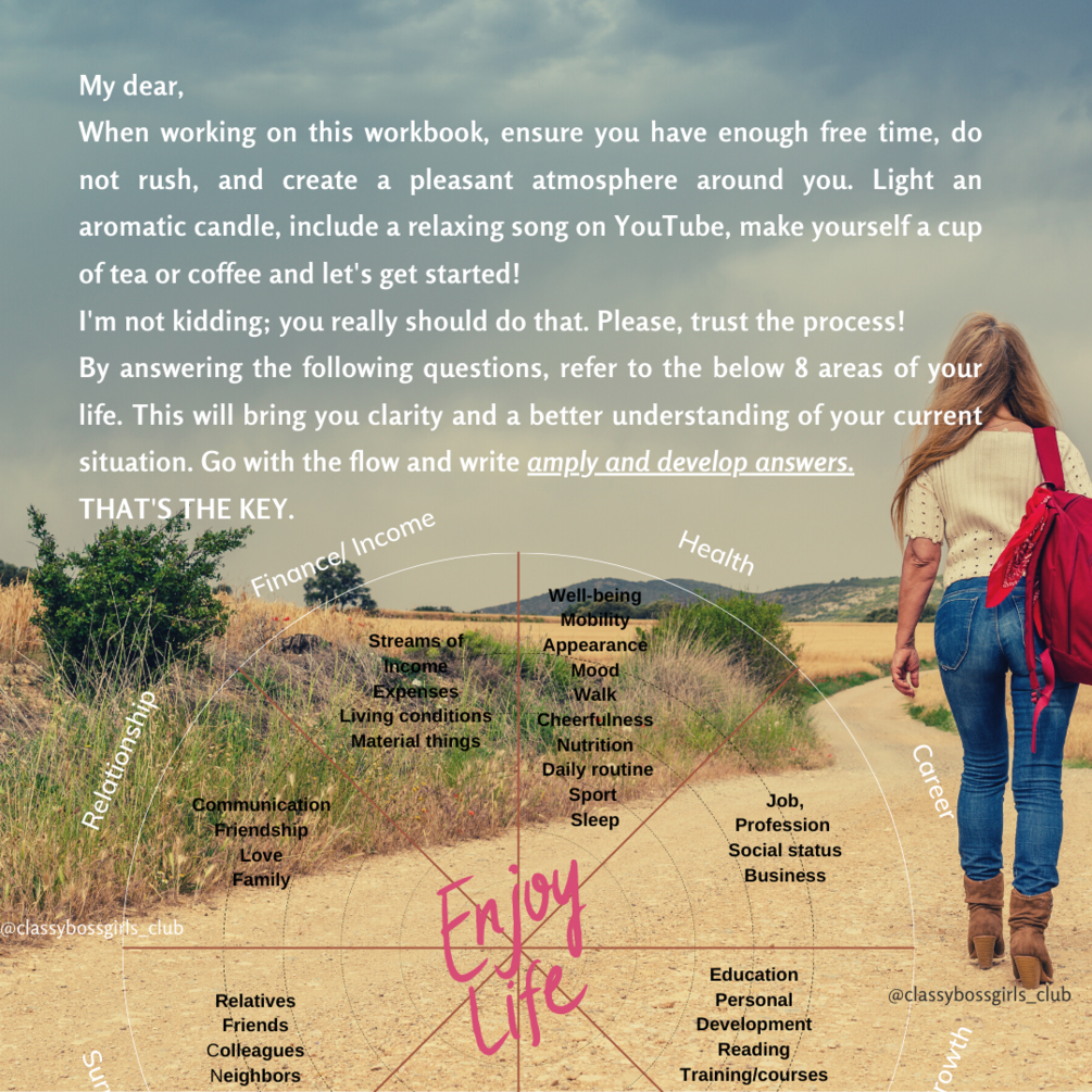 I know this, because a few years ago, the questions illustrated in this workbook helped me to get clarity in my life and move forward into the better for me direction.